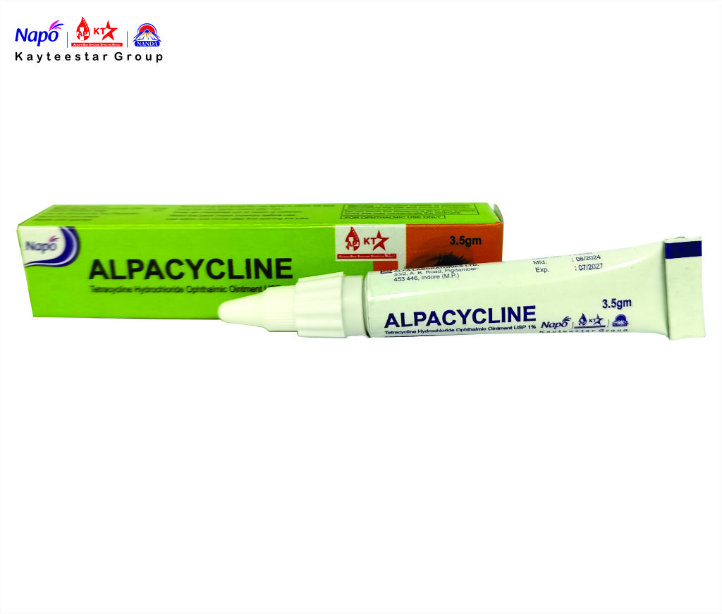 February 13, 2025 ALPACYCLINE OINTMENT Product Code AP000106 Pack Size 25 X 3.5 Gm Dosage Derma Composition Each gm contains:Tetracycline Hydrochloride USP 10mgSterile Paraffin base q.s. SKU: AP000106 Category: Derma Related products KETOKREM CREAM Read more KREMODIK PLUS GEL Read more NAPO NOPILE OINTMENT Read more DERMASTER LOTION Read more