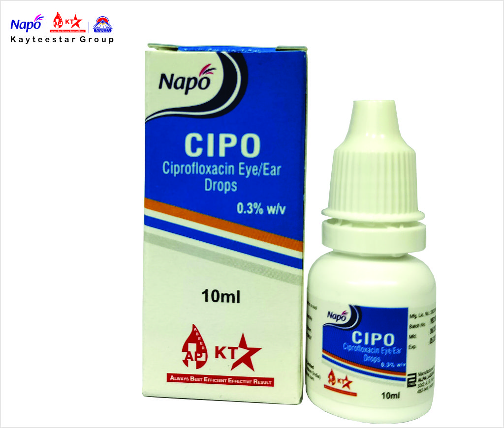 February 13, 2025 CIPO EYE/EAR DROP Product Code AP000136 Pack Size 10 ML Dosage Drop Composition Composition:: Ciprofloxacin Hydrochloride BP Eq. to Ciprofloxacin 0.3% w/v,Benzalkonium Chloride BP (as preservative) 0.01% w/v,Sterile aqueous vehicle q.s. SKU: AP000136 Category: Drop Related products NAPOLOGIC EYE DROP Read more ORAFLORA GEL Read more FLURBIKITE EYE DROP Read more CYCLOKAM EYE DROP Read more