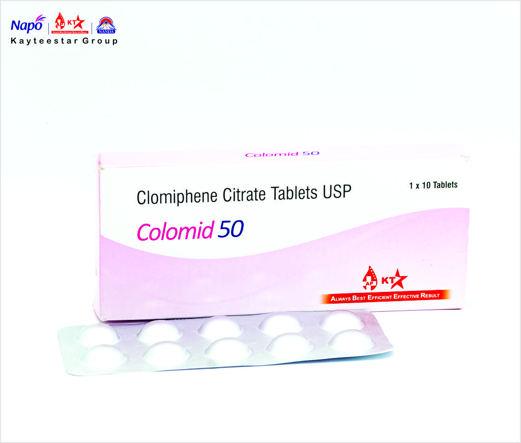 April 18, 2025 COLOMID 50 TABLET Product Code AP000393 Pack Size 1×10’s Alu Alu Dosage Tablets Composition Each uncoated tablet contains: Clomiphene Citrate USP 50 mg,Excipients q.s. SKU: AP000393 Category: Tablets Related products CEFINE-400 TABLET Read more BON HUNGRY TABLET Read more KILLMAL KID 20/120 TABLET Read more BILANX 16MG (BETAHISTINE 16MG TABLET I.P) Read more