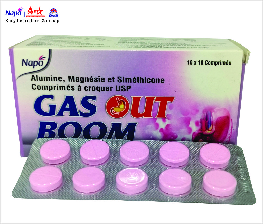 April 5, 2025 GAS OUT BOOM TABLETS Product Code AP000231 Pack Size 10 X 10 T Dosage Tablets Composition Alumina , Magnesia and Simethicone Chewable Tablet USP SKU: AP000231 Category: Tablets Related products KT-ZOLE 200MG Read more FAVIMAX 400MG TABLETS Read more KILLMAL KID 20/120 TABLET Read more CEFINE 200 TABLETS Read more