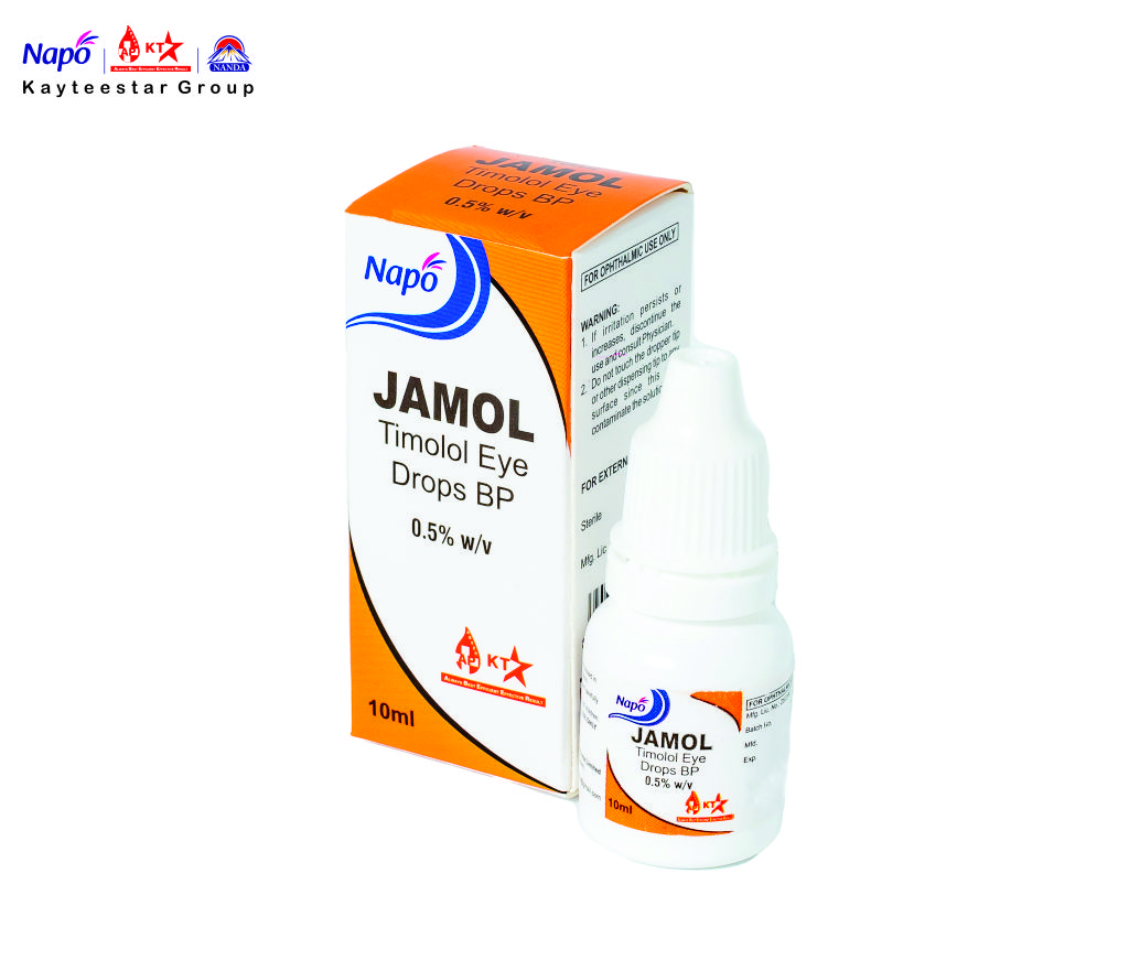 February 13, 2025 JAMOL EYE DROP Product Code AP000142 Pack Size 10 ML Dosage Drop Composition Timolol Maleate BP Eq. to Timolol 0.5%w/v Benzalkonium Chloride BP 0.01% w/v (As Preservative) SKU: AP000142 Category: Drop Related products CIPO EYE/EAR DROP Read more AUROFLOX DROP Read more ORAFLORA GEL Read more NAPO GENTA EYE/EAR DROPS Read more