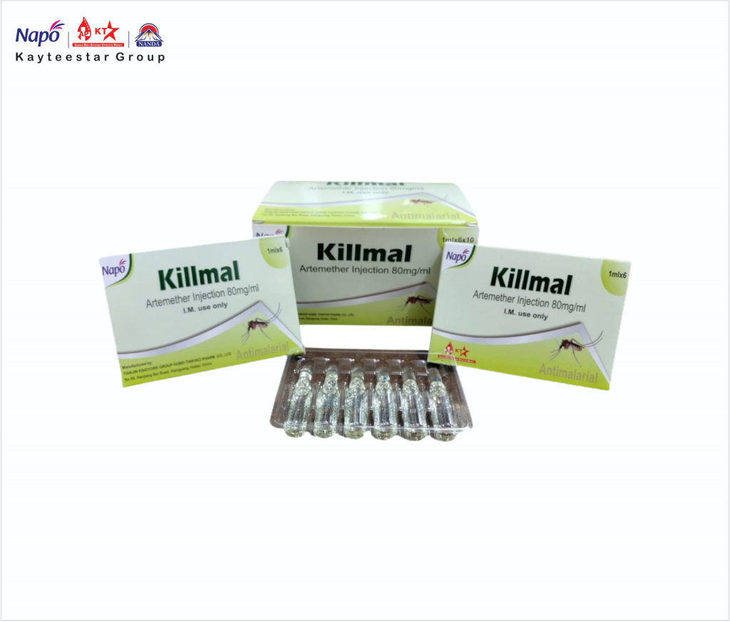 April 19, 2025 KILLMAL INJECTION Product Code AP000478 Pack Size 1 ML X 6 X 10 Dosage INJECTION Composition ARTEMETHER INJECTION 80MG/ML (IM) SKU: AP000478 Category: Injection Related products NAPOCORT INJECTION B.P 40 MG/ML Read more NAPO GENTA INJECTION Read more PROPOFOL INJECTION Read more CANNULA 20 G Read more