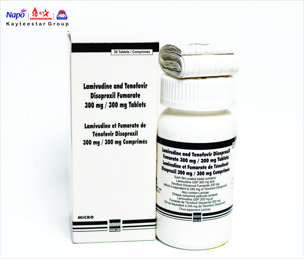 Each Film-coated tablets contains: Lamivudine USP 300 mg,and Tenofovir Disoproxil Fumarate 300 mg,(which is equivalent to 245 mg of Tenofovir Disoproxil ) Also contain Lactose
