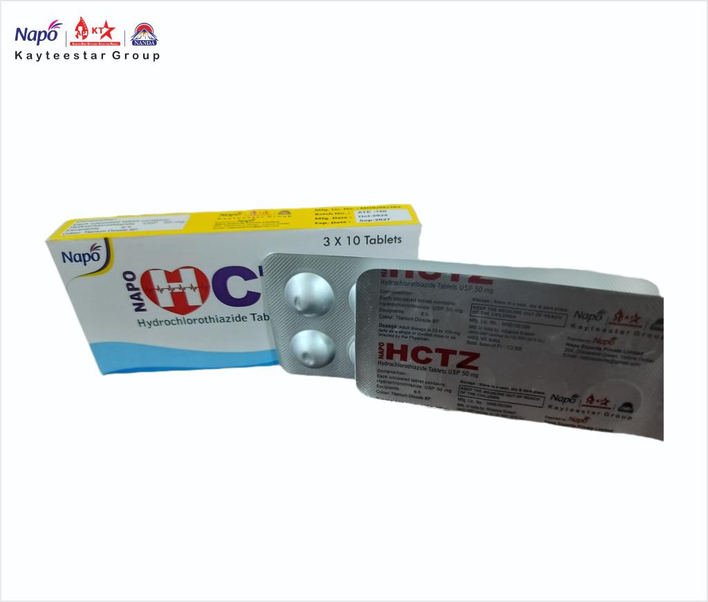 April 19, 2025 NAPO HCTZ TABLETS Product Code AP000530 Pack Size 10 X 3 X 10 T Dosage Tablets Composition Hydrochlorothiazide Tablets USP 50 mg Each uncoated tablet contains : Hydrochlorothiazide USP 50 mg, Excipients Q.S., Colour :Titanium Dioxide BP SKU: AP000530 Category: Tablets Related products ALTHRO 500 MG (ERYTHROMYCIN TABLETS) Read more KT-ZOLE 200MG Read more CEFINE-400 TABLET Read more GAS OUT TABLET Read more