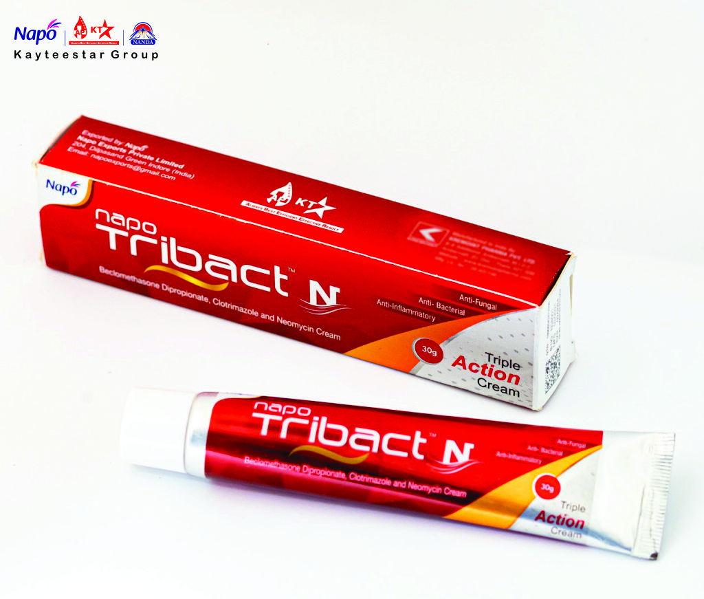 February 13, 2025 NAPO TRIBACT N CREAM Product Code AP000127 Pack Size 30 GM Tube Dosage Derma Composition Beclomethasone Dipropionate USP 0.025% w/w, zole USP 1.00 % w/w, + Neomycin Sulfate USP Eq. to Nemycin Base 0.5 % w/w Cream Base SKU: AP000127 Category: Derma Related products NAPO KAYCOT CREAM Read more NAPO NEWME SKINICE CREAM Read more H CORT CREAM Read more ALWAYSLITE CREAM 30GM Read more