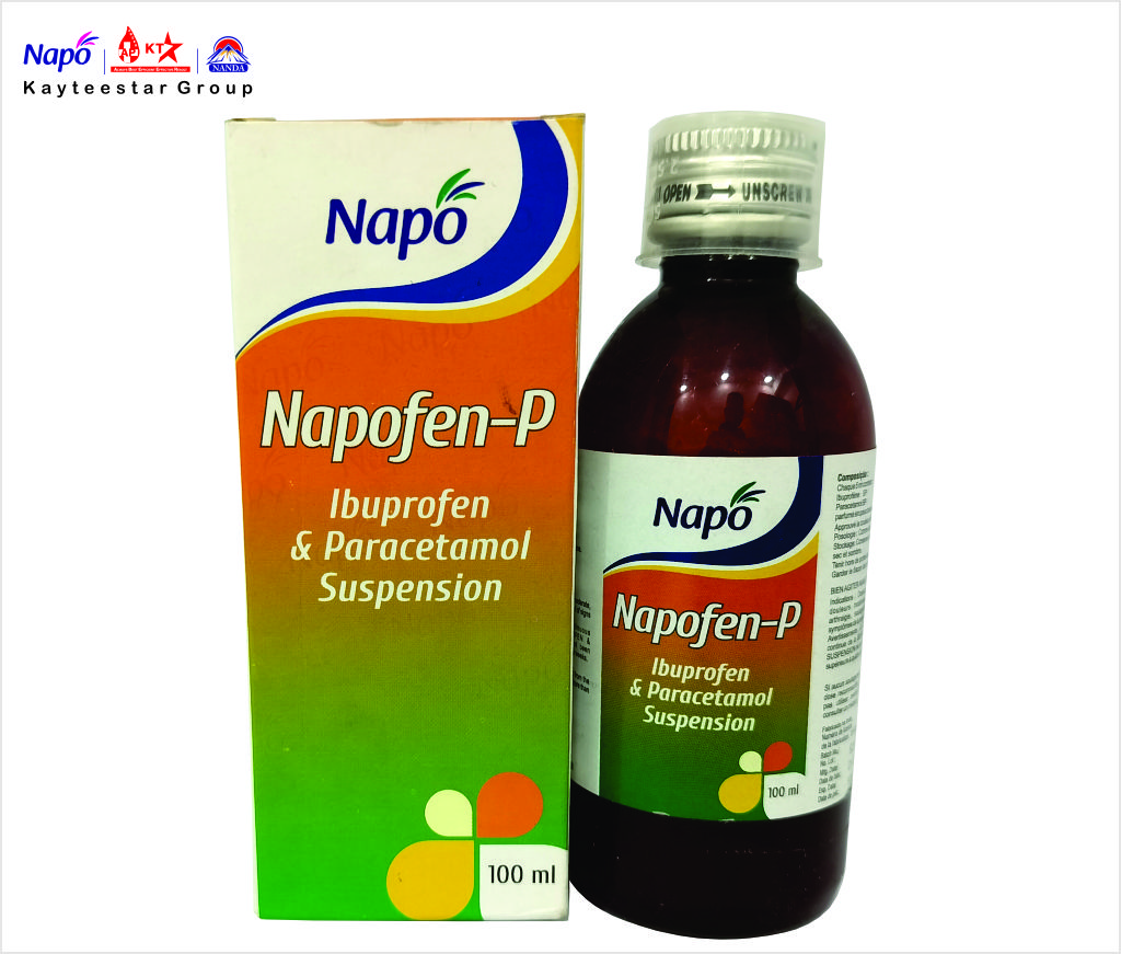 February 13, 2025 NAPOFEN-P SUSPENSION Product Code AP000032 Pack Size 100ML Dosage Syrup Composition Each 5 ml Contains : Ibuprofen BP 100 mg,Paracetamol BP 125 mg,Flavoured Syrup base q.s. SKU: AP000032 Category: Syrup Related products GAS OUT SUSPENSION Read more CALCI -DM SUSPENSION Read more MAXPLAT SYRUP Read more NAPO TAM TAM TONIC Read more