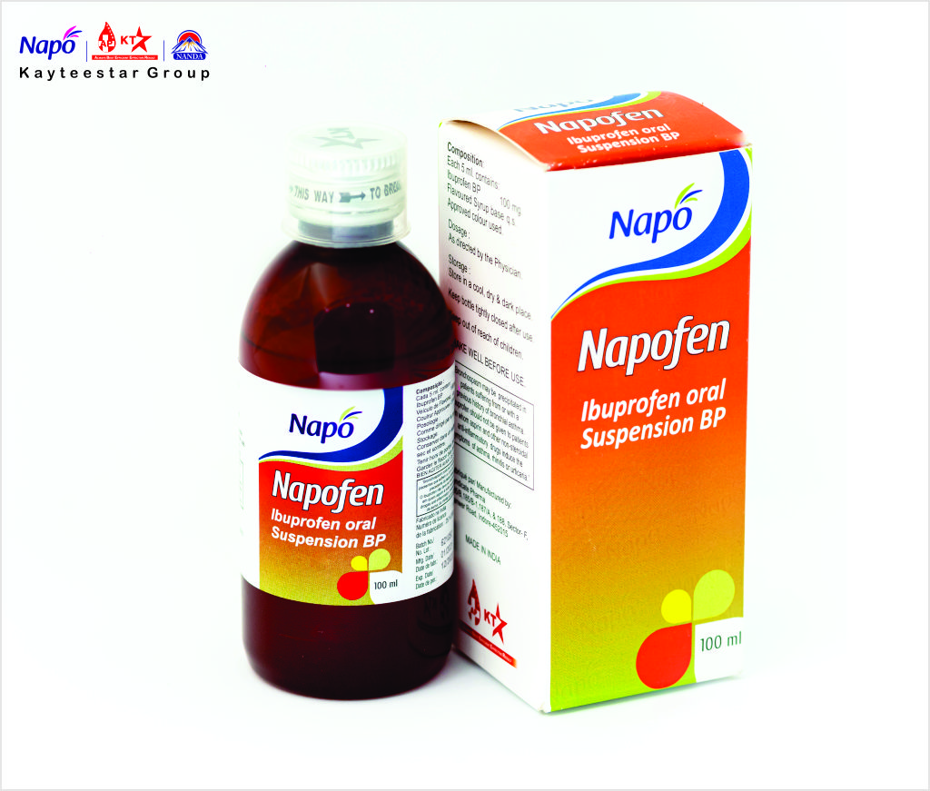 February 13, 2025 NAPOFEN SUSPENSION Product Code AP000031 Pack Size 100ML Dosage Syrup Composition Each 5 ml Contains:lbuprofen BP 100 mg ,Flavoured syrup base q.s. SKU: AP000031 Category: Syrup Related products NAPO KOF KLEAR Read more MAXPLAT SYRUP Read more NAPO TAM TAM TONIC Read more NAPOCUF SYRUP Read more