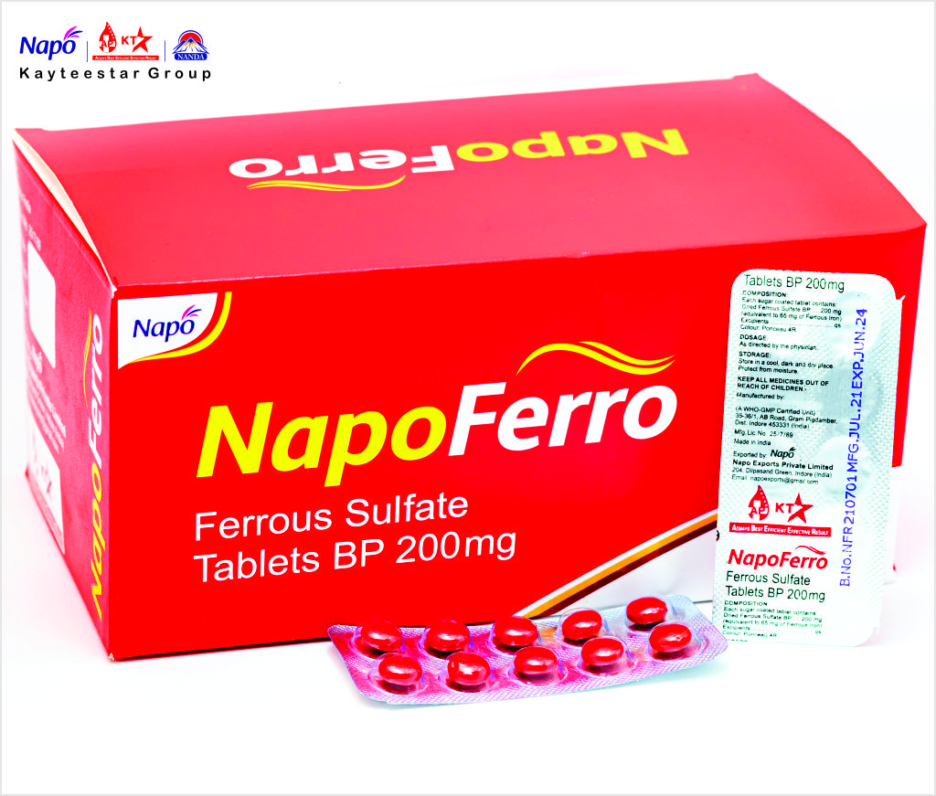 April 14, 2025 NAPOFERRO TABLET BLISTER PACK Product Code AP000313 Pack Size 100 X 10 T Dosage Tablets Composition Each Sugar Coated Tablet Contains: Dried Ferrous Sulfate BP 200 mg , (Equivalent to 65 mg of Ferrous Iron) Colour: Ponceu 4R SKU: AP000313 Category: Tablets Related products KT-ZOLE 200MG Read more ALTENOL 50MG TABLETS Read more FAVIMAX 400MG TABLETS Read more CIPO TZ TABLETS Read more