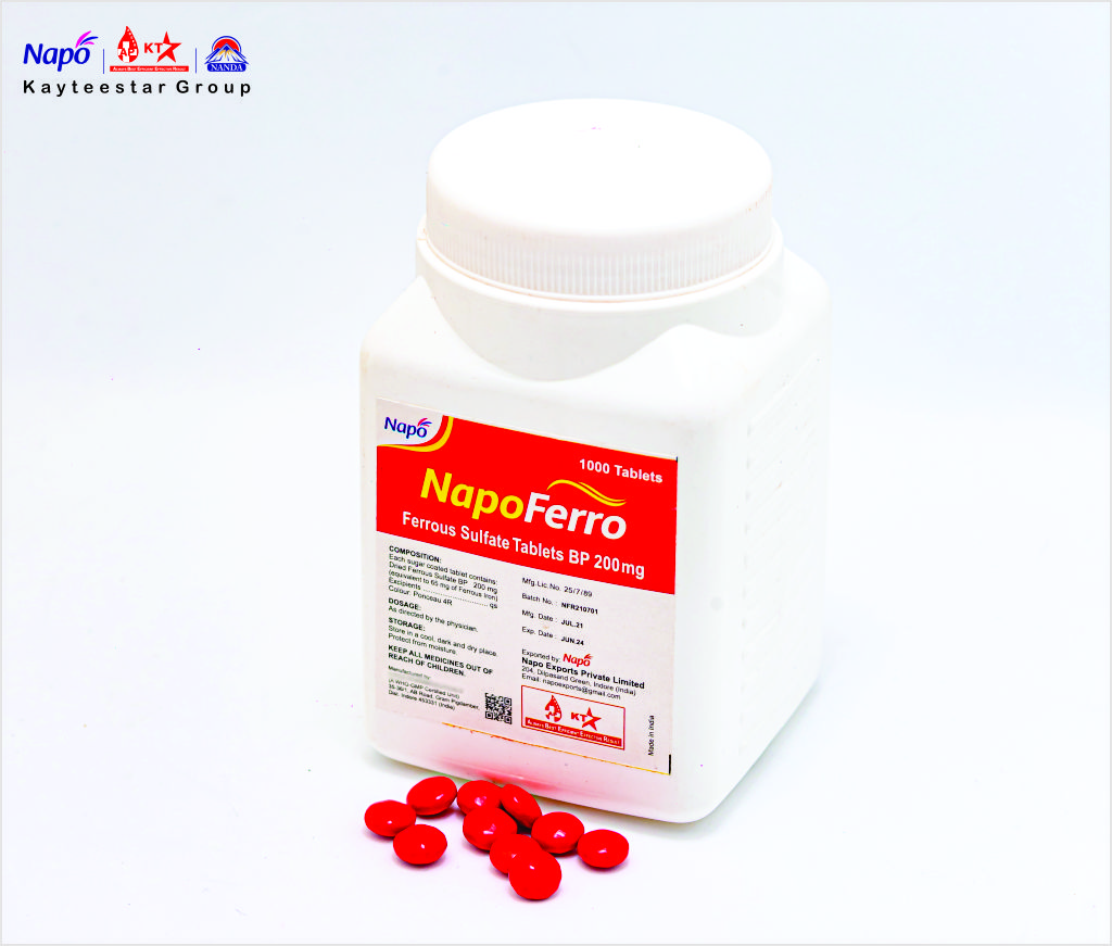 April 14, 2025 NAPOFERRO TABLET JAR PACK Product Code AP000314 Pack Size 1 X 1000 JAR Dosage Tablets Composition Each Sugar Coated Tablet Contains: Dried Ferrous Sulfate BP 200 mg , (Equivalent to 65 mg of Ferrous Iron) Colour: Ponceu 4R SKU: AP000314 Category: Tablets Related products BILANX 16MG (BETAHISTINE 16MG TABLET I.P) Read more ALTENOL 50MG TABLETS Read more FINEMOX CV 625 TABLET Read more CIPO TZ TABLETS Read more