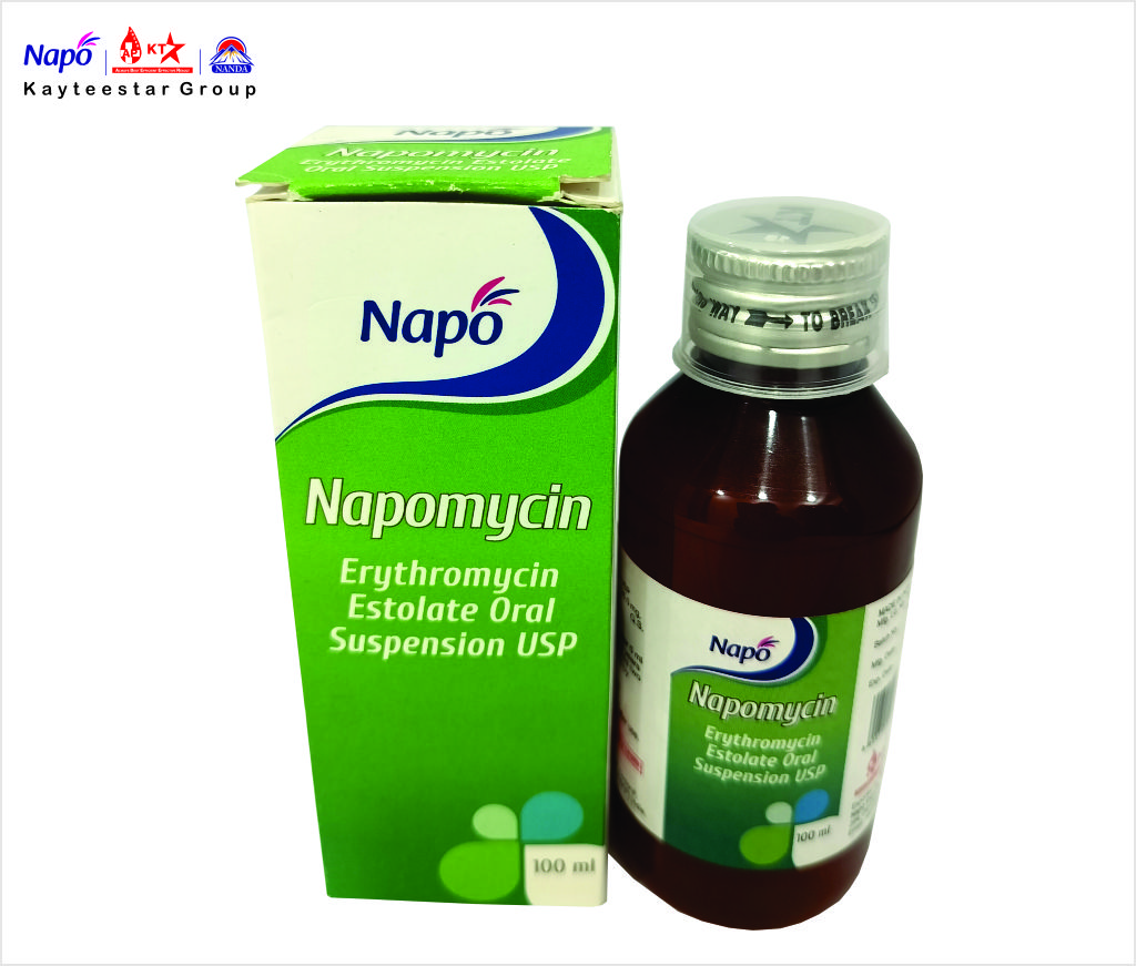 February 13, 2025 NAPOMYCIN SUSPENSION Product Code AP000038 Pack Size 100ML Dosage Syrup Composition Each 5ml Contains: Erythromycin Estolate USP , Eq. to Erythromycin 125 mg , Flavoured Syrup base q.s. SKU: AP000038 Category: Syrup Related products NAPO -C SUSPENSION Read more BON POWER PLUS SYRUP Read more NAPOCUF SYRUP Read more BONI PLUS DIGESTIVE TONIC Read more