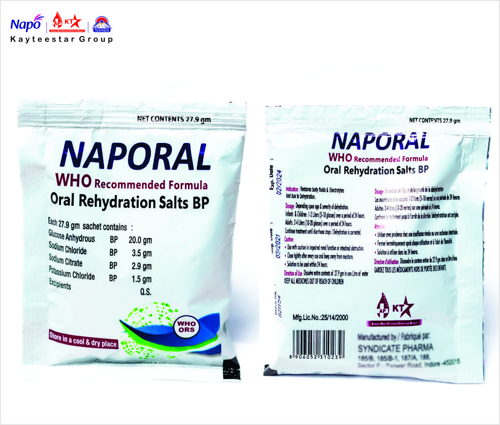 February 13, 2025 NAPORAL ORS 27.9 GM Product Code AP000165 Pack Size 1 X 6 X 100 X 27.9 G Dosage Consumer Goods Composition Each 27.9 gm Sachet Contains: Glucose Anhydrous BP-20 gm, Sodium Chloride BP 3.5 gm, Sodium Citrate BP 2.9 gm,Potassium Chloride BP 1.5 gm, Excipients q.s. SKU: AP000165 Category: Consumer Goods Related products 25 PULL PACK ICEBERG WET WIPES Read more NAPO BABY OIL Read more KAYCOT POWDER Read more NAPO BABY LOTION Read more