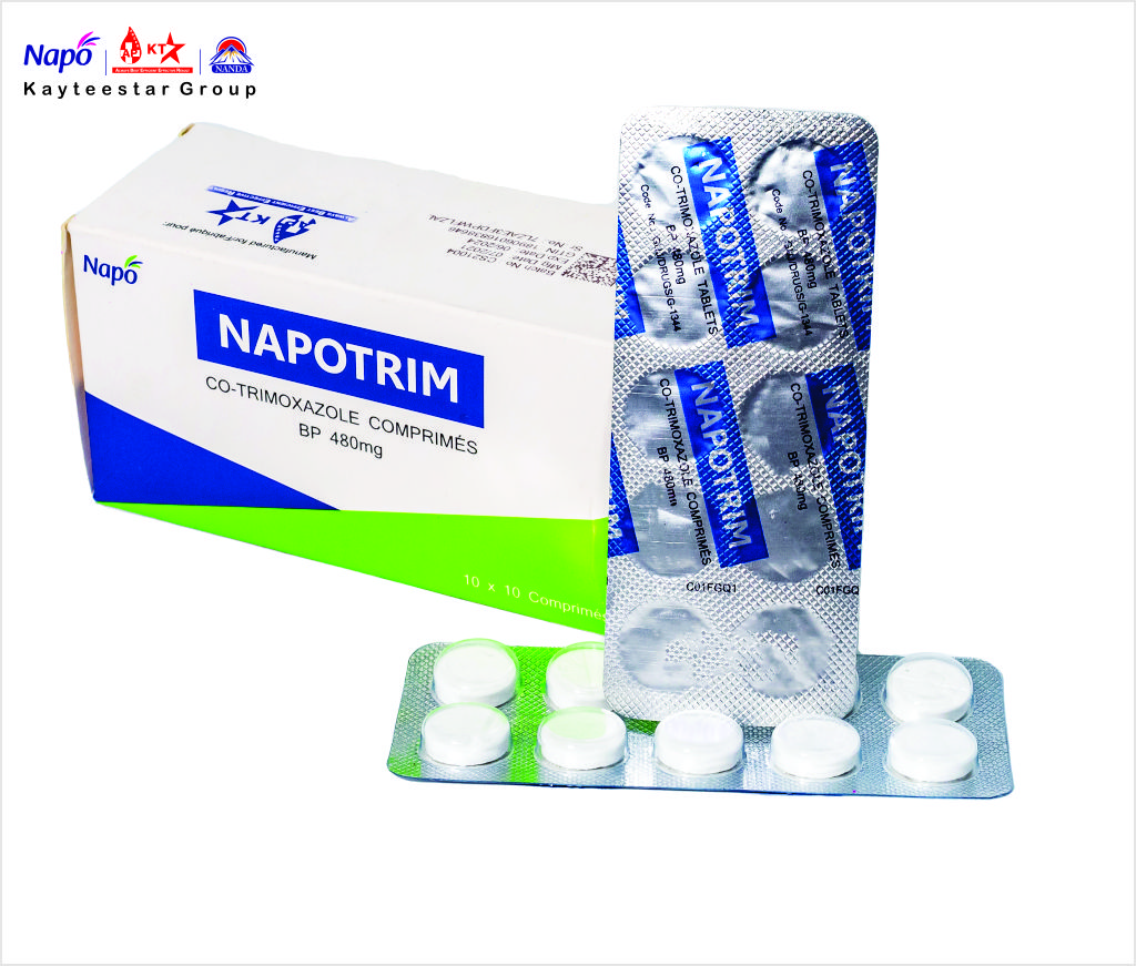 April 16, 2025 NAPOTRIM TABLET Product Code AP000324 Pack Size 10 X 10 T Dosage Tablets Composition Co-Trimoxazole Tablets BP 480 MG Each uncoated tablet contains :Trimethoprim BP-80 mg, Sulfamethoxazole BP-400 mg,Excipients-q.s. SKU: AP000324 Category: Tablets Related products BON HUNGRY TABLET Read more ALTHRO 500 MG (ERYTHROMYCIN TABLETS) Read more ALTENOL 50MG TABLETS Read more KILLMAL 80/480 TABLET Read more
