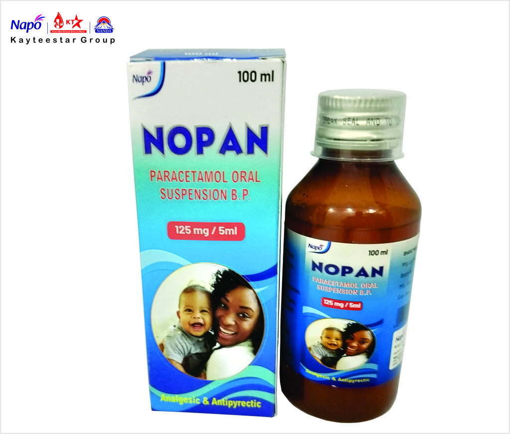 February 13, 2025 NOPAN SUSPENSION Product Code AP000041 Pack Size 100ML Dosage Syrup Composition Paracetamol Oral Suspension B.P. 125 mg/5 ml, Each 5 ml Contains :Paracetamol BP-125 mg in a Flavoured Syrupy Base-q.s. , Colour : Sunset Yellow SKU: AP000041 Category: Syrup Related products NAPO TAM TAM TONIC Read more NAPO KOF KLEAR Read more GAS OUT SUSPENSION Read more KAYORANGE SYRUP Read more