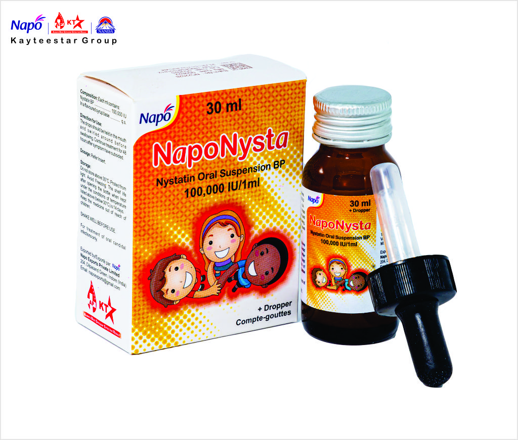 February 13, 2025 NYSTATIN ORAL SUSPENSION BP 100000 IU /1 ML WITH DROPPER Product Code AP000042 Pack Size 30 ML Dosage Syrup Composition Each ml contains: Nystatin BP – 100,000 IU, In a flavoured syrup base – q.s. SKU: AP000042 Category: Syrup Related products NAPO -C SUSPENSION Read more NAPOCUF SYRUP Read more FIFER SYRUP Read more ERYTHROMEC SUSPENSION Read more