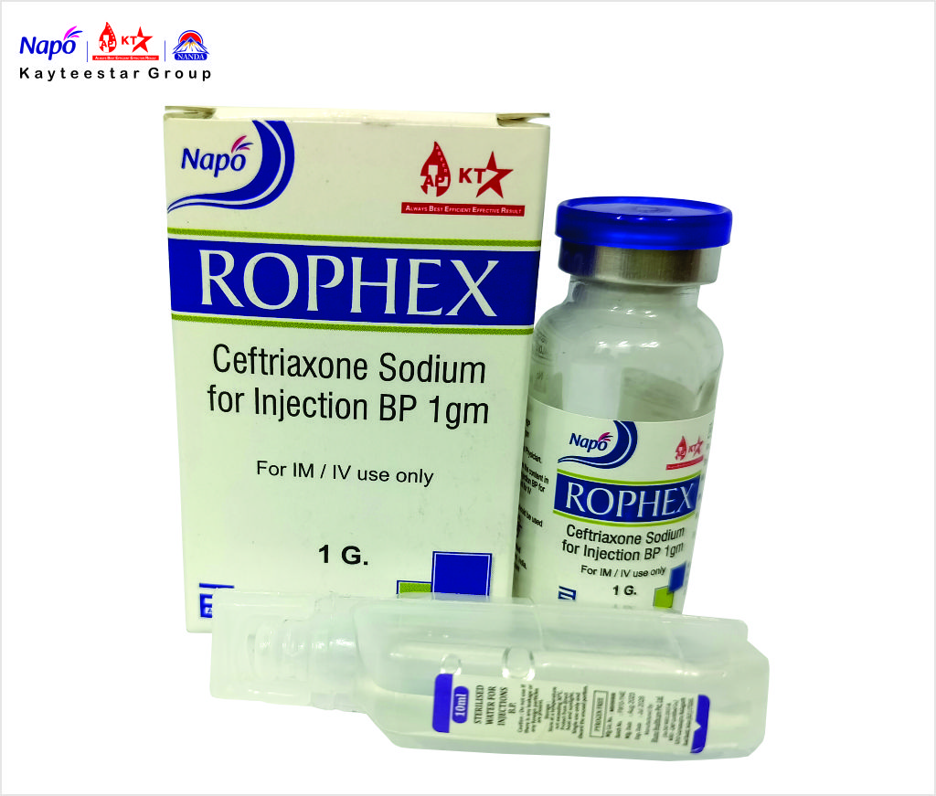 February 13, 2025 ROPHEX INJECTION Product Code AP000161 Pack Size 1 GM (Vial + WIFI) Dosage Injection Composition Each vial Contains:Sterile Ceftriaxone Sodium BP eq. to Ceftriaxone 1 gm SKU: AP000161 Category: Injection Related products NAPO AMINO INJECTION Read more STERILE WATER FOR INJECTION BP Read more ALPAMYCETIN INJECTION Read more NAPO GENTA INJECTION Read more
