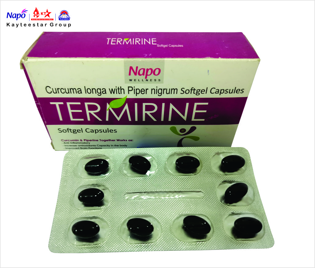 February 13, 2025 TERMIRINE SOFTGEL CAPSULE Product Code AP000104 Pack Size 3 X 10 SGC Dosage Capsules Composition Each Softgel Capsule Contains: Haldi Ext. (Curcuma longa) Rz. 300mg, Kali Mirch Ext. (Piper nigrum) Fr. 50mg, Excipients q.s. SKU: AP000104 Category: Capsules Related products INFLUENCE M CAPSULE Read more NAPO GAS GO SOFTGEL CAPSULE Read more NAPO VAG C SOFTGEL CAPSULES Read more GARLIC SOFT GEL CAPSULES 500 MG Read more
